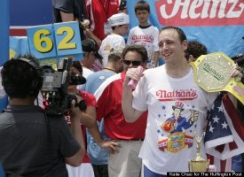 Kobayashi emerged on the competitive eating circuit a decade ago, winning six straight Nathan's Famous contests and earning a reputation as unbeatable. That is, until Chestnut took the Mustard Belt in 2007, winning in consecutive years with 66, 59, 68, 54, and now, 62 HDBs.