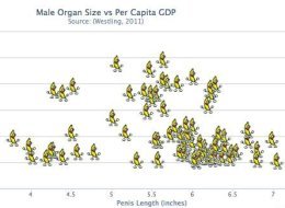 Westling also found, "Economic growth between 1960 and 1985 is negatively associated with the size of male organ, and it alone explains 20% of the variation in GDP growth."