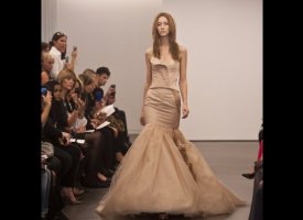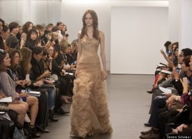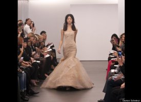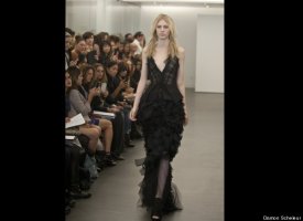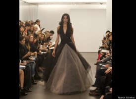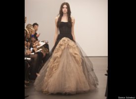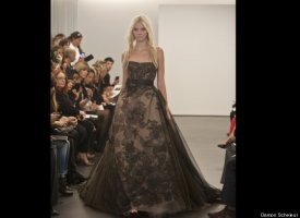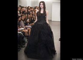 Vera Wang, the unofficial queen bee of the bridal couture world, showed her latest collection on Sunday as part of New York's bridal fashion week. Her dresses -- artfully witchy-looking frocks made from deconstructed chiffon, silk, tulle and organza in decidedly non-traditional tones like nude and black, were perhaps more funeral than bridal (indeed, there was nary a white dress in sight) -- but trust us that her unusual show was one of the most stunning we've ever seen, whether in the bridal couture world or beyond. Check out some highlights from the show below, and let us know: would you wear a black dress on your wedding day?