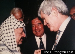 On Monday, a political operative who has been working on Palestine-Israel policy for the past 20 years sent The Huffington Post a picture of Gingrich, then the House minority whip, grasping the hand of longtime Palestinian leader Yasser Arafat immediately following the September 1993 Oslo peace accords.