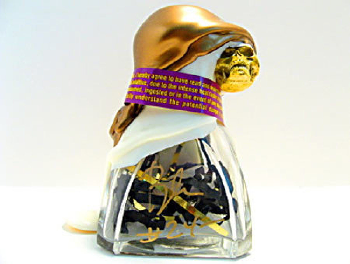 Atomic Burger's "Atomic Fallout" burger is topped with a burger sauce made with two of the world's hottest chilles -- the ghost chile and the Scotch bonnet -- and is so spicy that the brave patrons who order are asked to wear protective gloves. In terms of hotness, the burger clocks in at 1 million points on the Scoville scale.