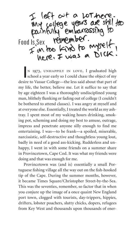 The book originally came out in 2000, and was revisited a few years later for an Updated Edition. Ever one to remix the leftovers, Bourdain has now revisited it again for a mass-market paperback "Insiders Edition" in which he makes notes on more than 50 of the pages, updating, correcting and even apologizing at times for his views at the time.