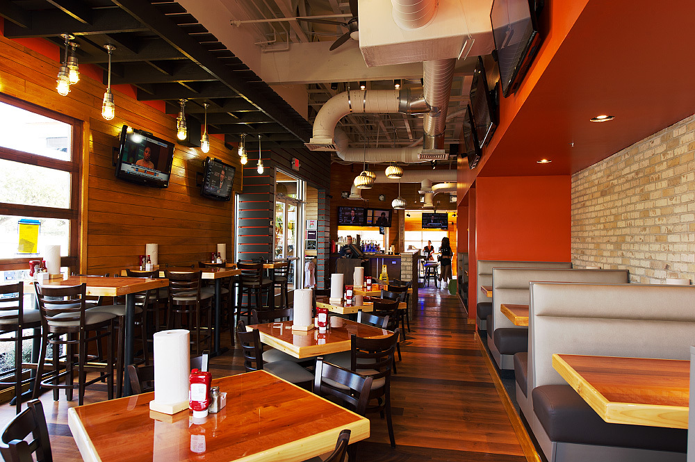 We'd also add that, like many other chain restaurant redesigns, the new look shows the unmistakable mark of Chipotle. Think a mostly natural, industrial color palate with occasional flourishes of red.