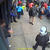 Race volunteers Pat Cohen and Kim Semple embrace near the makeshift memorial of flowers and candles on Boylston Street