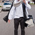 Griffin Schroeder donned the blue runners' jacket as he stood near a memorial on Boylston Street before heading back to Wisconsin.