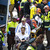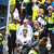 Firefighters tend to a man following an explosion at the finish line of the Boston Marathon in Boston, Monday, April 15, 2013. Two bombs exploded at the Boston Marathon finish line Monday killing at least two people injuring dozens. (AP Photo/Michael Dwyer)