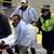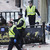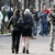 As Boston Marathon runners walk by, SWAT team members stand guard near the finish line in Boston Monday, April 15, 2013. Two explosions shattered the euphoria of the Boston Marathon finish line on Monday, sending authorities out on the course to carry off the injured while the stragglers were rerouted away from the smoking site of the blasts. ( (AP Photo/Winslow Townson)