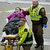A Boston police officer wheels in injured boy down Boylston Street as medical workers carry an injured runner following an explosion during the 2013 Boston Marathon in Boston, Monday, April 15, 2013. Two explosions shattered the euphoria at the marathon's finish line on Monday, sending authorities out on the course to carry off the injured while the stragglers were rerouted away from the smoking site of the blasts. (AP Photo/Charles Krupa)