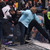 Passersby put pressure on a victim's leg to try to stop the bleeding at the scene of the first explosion near the finish line of the Boston Marathon. (John Tlumacki / The Boston Globe / Getty Images)