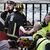Emergency responders aid a woman on a stretcher who was injured in a bomb blast near the finish line of the Boston Marathon Monday, April 15, 2013 in Boston. Two bombs exploded in the packed streets near the finish line of the marathon on Monday, killing at least two people and injuring more than 80, authorities said. (AP Photo/Jeremy Pavia)