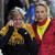 Chris Darmody, right, holds his wife Sue in Boston, Monday, April 15, 2013. Chris says he was waiting for Sue when an explosion detonated near his location at the finish line of the Boston Marathon. The couple were later reunited after all runners were diverted from the course. (AP Photo/Michael Dwyer)