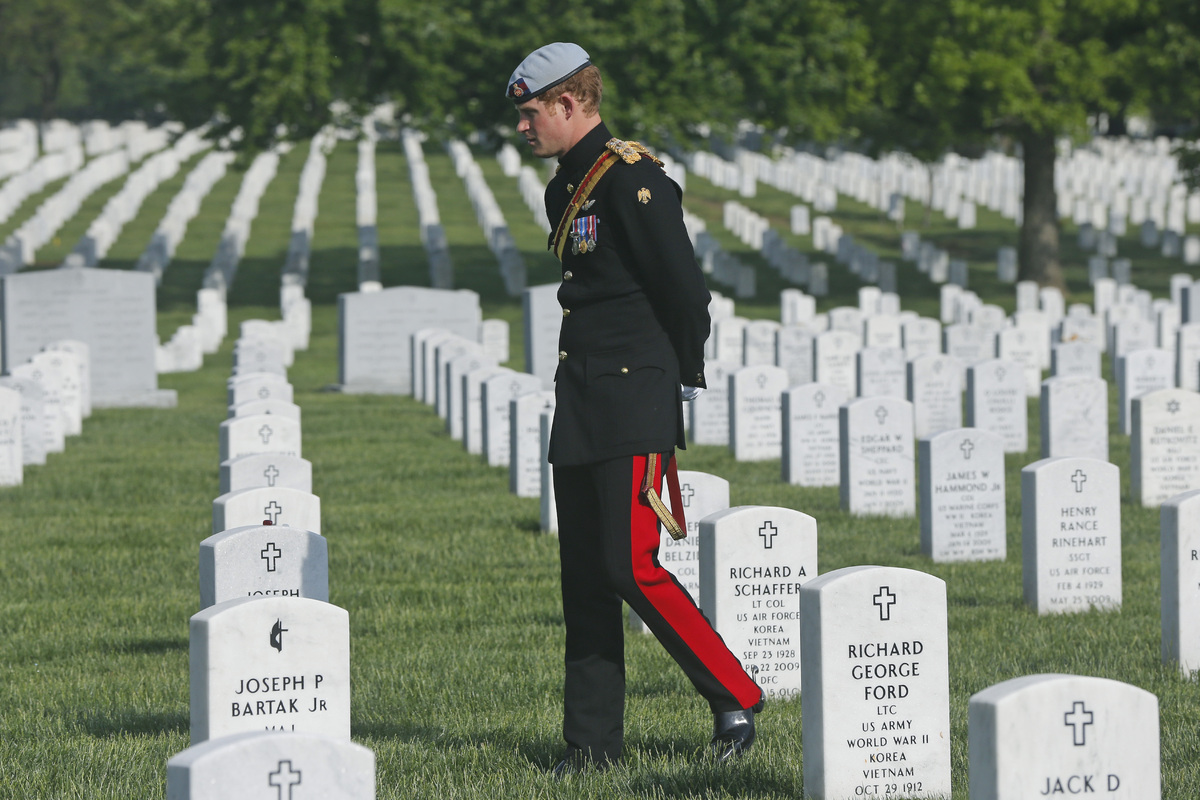 The prince also participated in a wreath-laying ceremony at the Tomb of the Unknowns. The poppies-covered wreath (poppies are traditionally worn on Remembrance Day in the British Commonwealth) carried the message: "In grateful memory of all those who have given their lives in the cause of freedom. Captain Harry Wales."