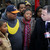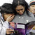 Danyia Bell, left, 16, and Artureana Terrell, 16, react as they read a program for the funeral of Hadiya Pendleton outside the Greater Harvest Missionary Baptist Church after the service, Saturday, Feb. 9, 2013, in Chicago. Hundreds of mourners and dignitaries including first lady Michelle Obama packed the funeral service Saturday for a Chicago teen whose killing catapulted her into the nation's debate over gun violence. (AP Photo/Nam Y. Huh)