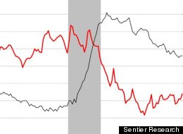 Below is a chart from Sentier Research showing median household income (in red) and the monthly unemployment rate (in grey) from January 2000 to June 2013: