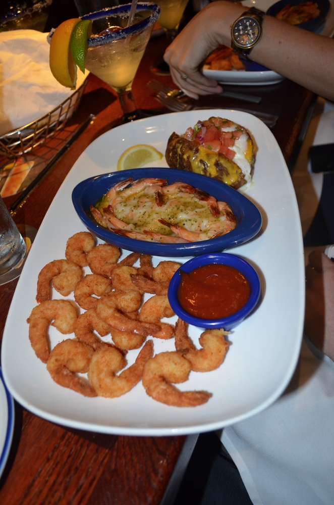 The drinks have a lot of calories, and just about everything on this menu is cooked in butter or breaded and fried, except for the grilled shrimp. We'll let that fact slide this time.
