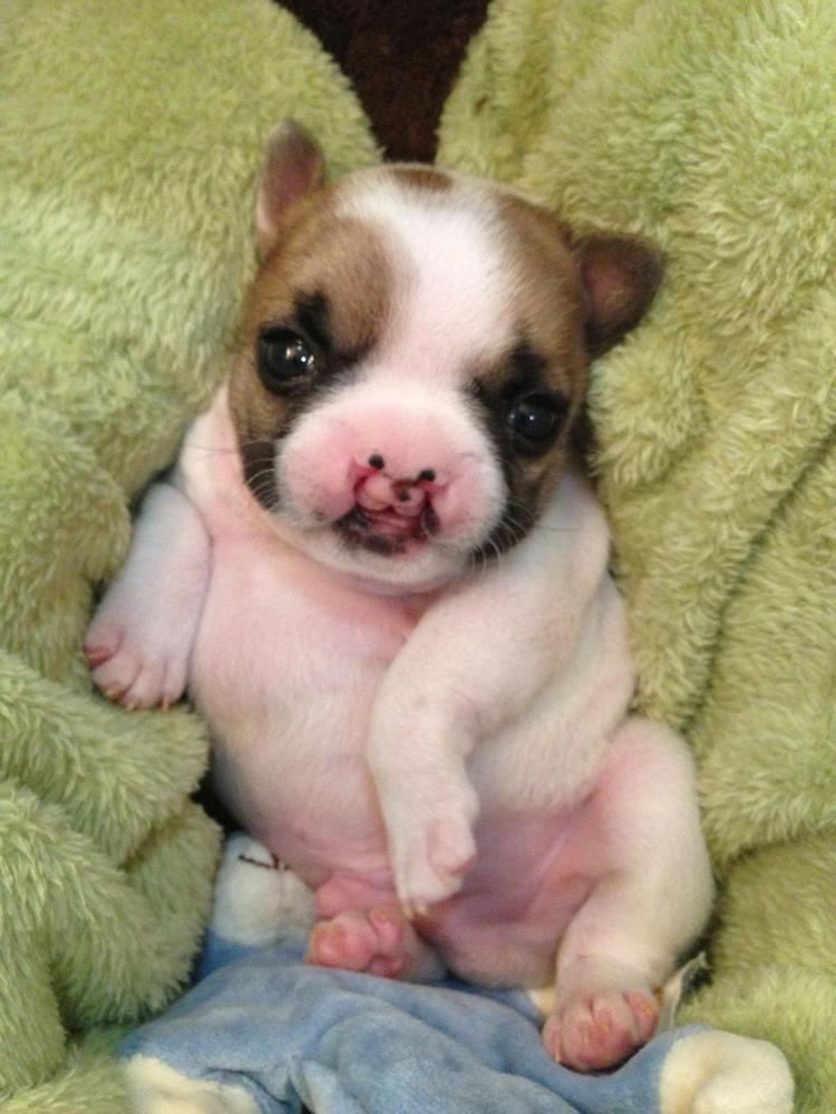 Dominic, who is just 18 weeks old, was rescued along with a litter of other puppies when police raided a Denver home, according to the Greeley Tribune. Due to Denver's pit bull ban, the then 7-week-old pup was sent to the Denkai Community Veterinary Clinic, in Greeley, Colo., which rescues domestic and farm animals.