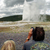 FILE - In this Friday, Aug. 15, 1997 file photo, an unidentified pair of visitors to the Yellowstone National Park photograph the Old Faithful geyser as it rockets 100-feet skyward in Wyoming. Hundreds of small earthquakes at Yellowstone National Park in recent weeks have been an unsettling reminder for some people that underneath the park's famous geysers and majestic scenery lurks one of the world's biggest volcanoes. (AP Photo/Kevork Djansezian, File)