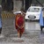An Indian woman shields herself with a plastic bag as she walks on a road in the rain, in Bhubaneswar, India, Friday, Oct. 10, 2014. (AP Photo/Biswaranjan Rout)