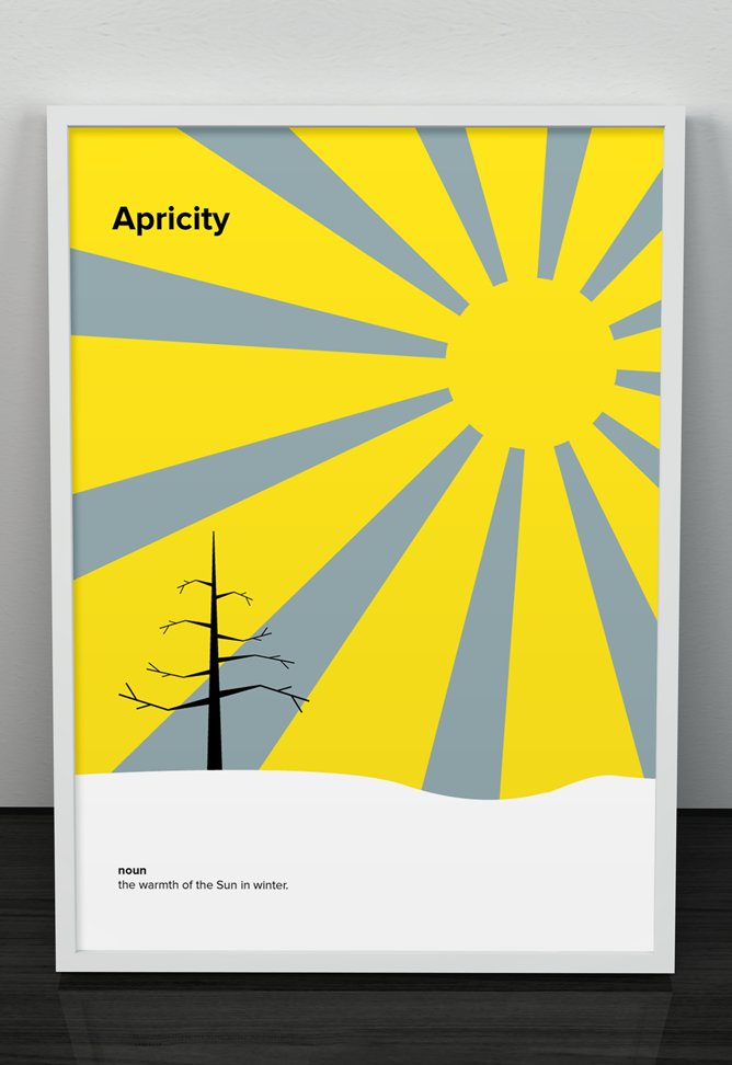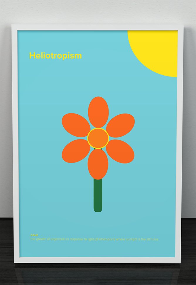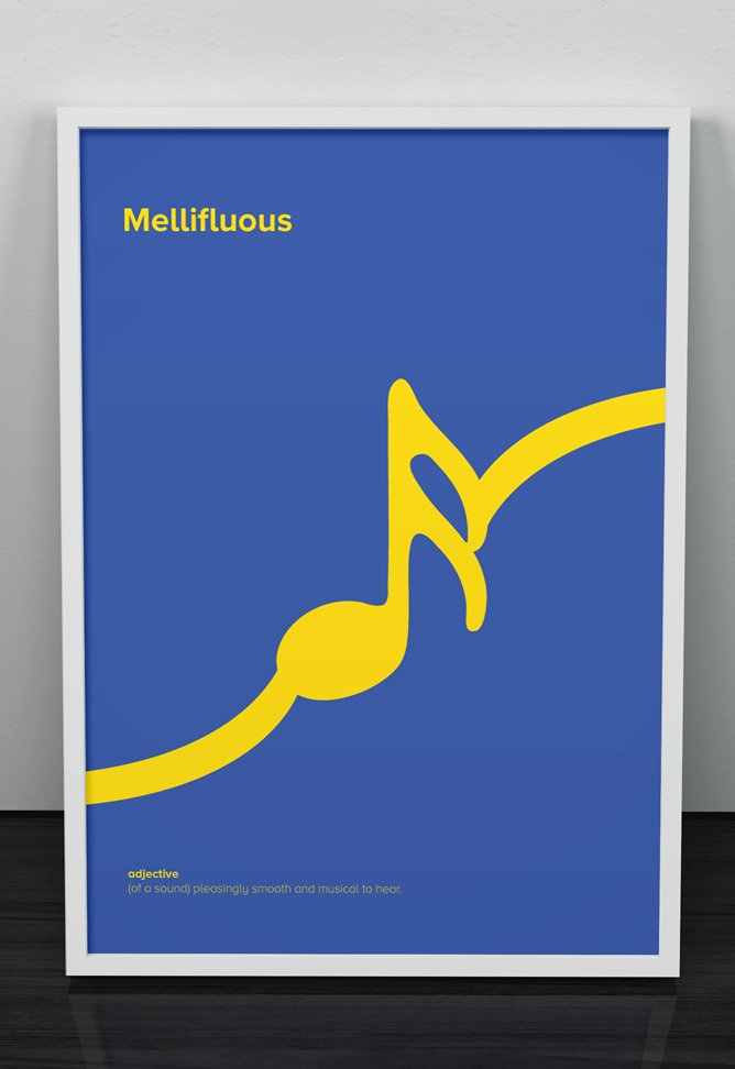 Mellifluous -- a pleasant-sounding word used to describe pleasant sounds -- is a keen example of the wondrous, labyrinthine nature of language. In an illustration he made of the word for a series of language posters, illustrator Mick Watson depicted a yellow music note floating towards each corner of the page. With mellifluous and the handful of other linguistic gems he's visually translated, his spare designs bring the mood of each word to life.