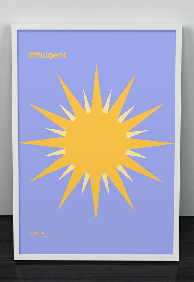 Watson underwent the project in response to his 9-year-old daughter's budding interest in language -- although she's been experimenting with incorporating long words into her lexicon, she's sometimes "fuzzy on their meanings," Watson says. Her favorite so far is effulgent -- which means shining brightly. Watson's partial to scintilla -- a tiny trace or spark of a specified quality or feeling -- which is precisely what he aims to create with his work.