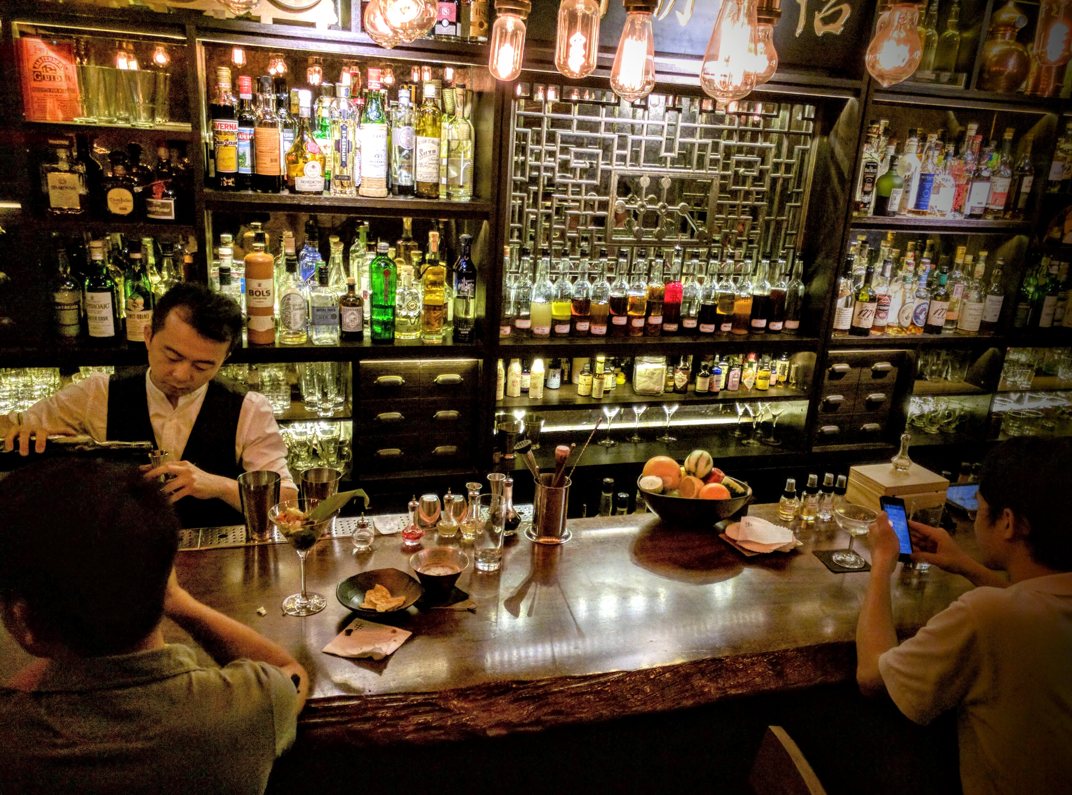 Those of you who read my article on the Spanish art of "ambiente" know that my travels are a constant search for friendly social settings where it's easy to meet locals. The R&D Cocktail Lab was like I'd died and gone to Heaven. So, how does one bar have so much ambiance while others do not? Perhaps it has to do with the beautiful wrought-iron artwork on the walls, or the bar that looks like it was pulled out of a 1930's Prohibition speakeasy. But the ambiance *definitely* has to do with the sky-high morale of the staff, who laugh and joke their way through serving up the most delightful custom-made cocktails I ever enjoyed.