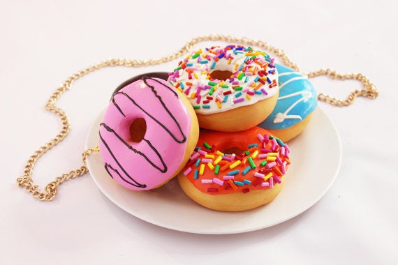 For starters, we kicked off the list with a $770 necklace for people who want to show off their love of diamonds and donuts. A frighteningly realistic purse that looks like a plate of donuts also made the list, alongside more reasonably priced items like a donut-themed lamp, shower curtain and beach towel (the list is organized from most to least expensive).