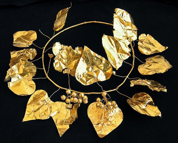 Rare treasures, such as this gold wreath, were found in ancient tombs dating back 2,400 years near Soli, a city on the Mediterranean island of Cyprus.