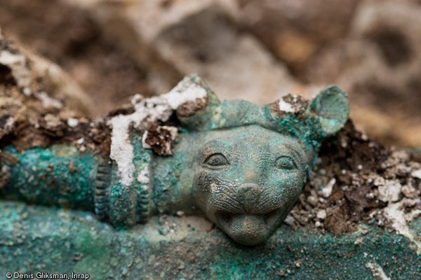 An opulent tomb was unearthed in France's Champagne region, along with a trove of artifacts including elaborate pottery, a sheathed knife and a chariot. A feline head adorns the tomb that dates back to the early 5th century B.C.
