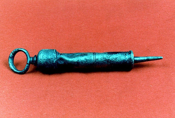 Archaeologists excavating pirate Blackbeard's sunken ship, named Queen Anne's Revenge, unearthed various medical devices from the wreckage, such as an urethral syringe used to treat syphilis. The items date back to 1718.