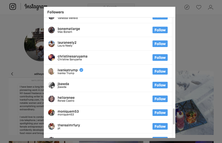 As of press time, the chef told HuffPost the freelancer has not reached back out to her. She has, however, gained an interesting new follower on her account: Ivanka Trump.
