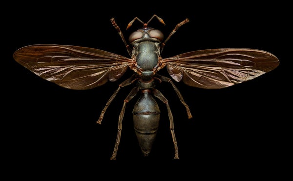 To create the photos, Biss meticulously captures thousands of close-up images of one insect with a microscope lens, and then stitches those individual images together to create one portrait. (Watch his process in the video above.)
