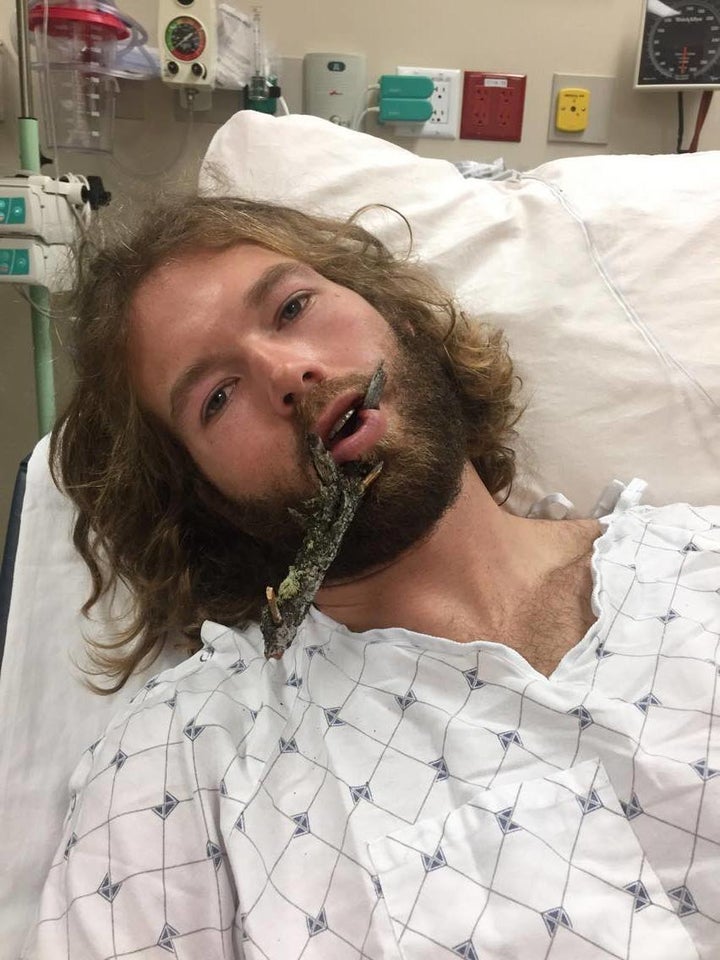After that, Hagood was taken to a hospital where emergency doctors and a plastic surgeon worked on his face to remove the branch and repair his lip area.