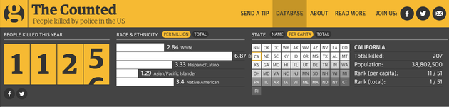 Police in California were involved in the most civilian deaths this year, killing 207 people, according to The Guardian. With the figures adjusted by population, New Mexico saw the highest rate of people dying at the hands of police.