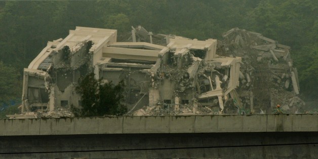 Massive slabs of concrete on a hillside were all that remained Wednesday of the Sanjiang Church after an army of excavators smashed into the building this week, following government claims it was an illegal structure.