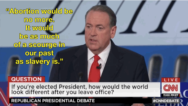 On Wednesday night, 10 men and one woman took the stage at the Ronald Reagan Presidential Library; each tried to convince the American people that he or she should be the next leader of this country. One big topic of conversation? Abortion, of course. More specifically, how terrible abortion is.