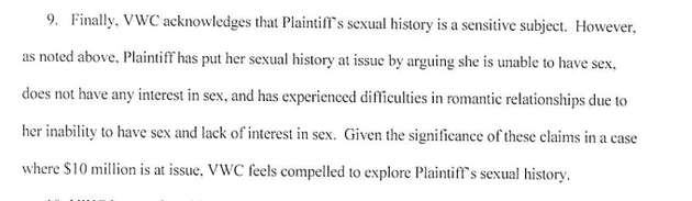 "As noted in the motion, Miss Doe is seeking money damages based in part on the following claims: she is unable to have sex, does not have any interest in sex, and has experienced difficulties in romantic relationships due to her inability to have sex and lack of interest in sex," Mark C. Nanavati, an attorney hired by Virginia Wesleyan, told HuffPost on Sunday. "Given the significance of these claims in a case where $10 million is at issue, Virginia Wesleyan has to investigate these claims like any other claims Miss Doe is making in order to properly investigate and defend this suit."