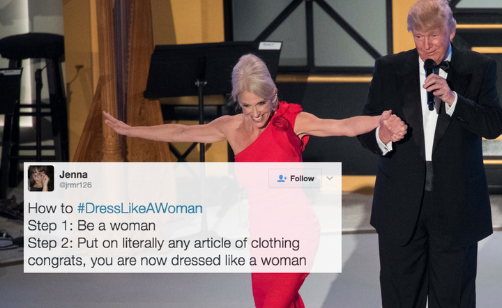 Twitter users tweeted images of women dressed, well, like women: in a hijab, in a doctor’s gown, in a police uniform, in an astronaut suit, in a military uniform. The list goes on and on. Users posted these photos with the hashtag #DressLikeAWoman.