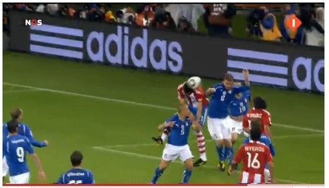 Italy was heavily favored against Paraguay going into the teams' first match of the 2010 World Cup, but the underdogs held strong for the first 37 minutes, keeping the game scoreless. Then, in the 38th minute, Paraguay stunned the defending World Cup champions by scoring a goal on a free kick. Aureliano Torres kicked the ball toward the goal, and Antolin Alcaraz headed the ball in for the shocking goal.