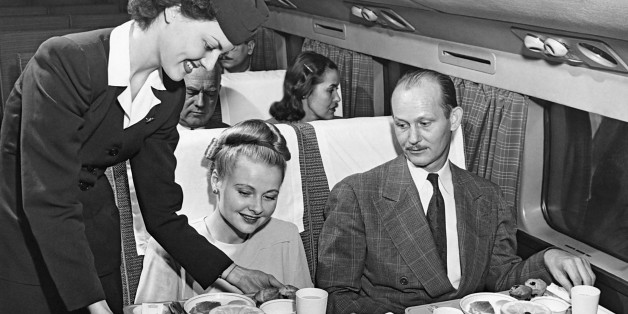 But in the 50s, flying was something different. It was something magical and marvelous. Air travel exploded into its Golden Age, and airplane trips weren't just a means of getting to your vacation -- they were a vacation in themselves. Passengers dressed in their finest to fly. They lined up for group photos before boarding. Riding an airplane made them feel like a movie star because it pretty much took the salary of a movie star to do so.