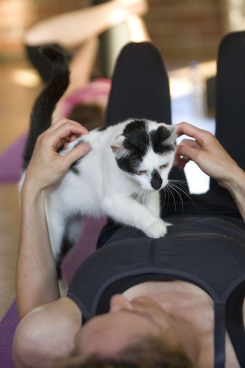 The idea for “Yoga for Cats” came from Jeanette Skaluba, a volunteer at Homeward Bound and longtime student of Connie Pease, who operates the studio. Skaluba has done yoga with her cat, Oreo, thought a joint class would be a great way to promote animal adoption.