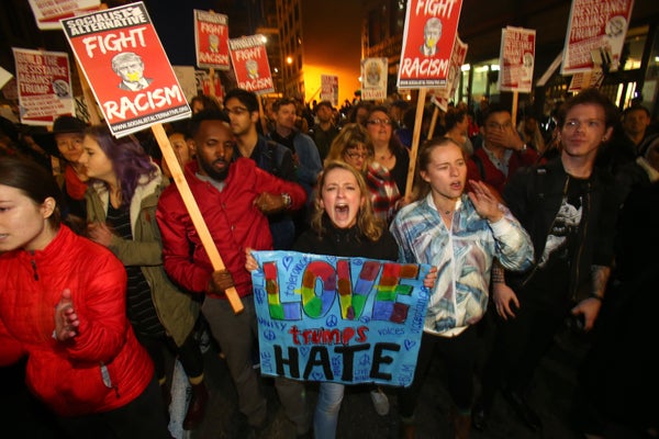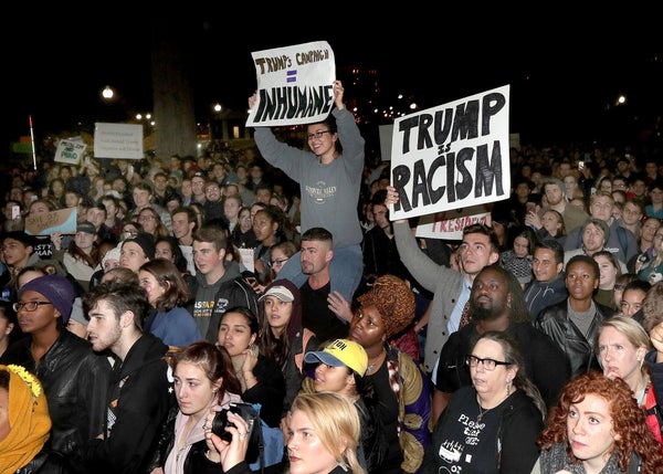 In Seattle, dozens of students at West Seattle High walked out of class, and hundreds of residents took to the streets in protest of the election results, the Seattle Times reported.