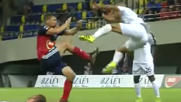 Soccer Player Booted After Brutal Drop Kick To Rival's Stomach